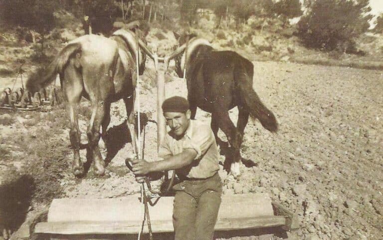 Ramon Bertan de Cal Bosch amb els animals al tros