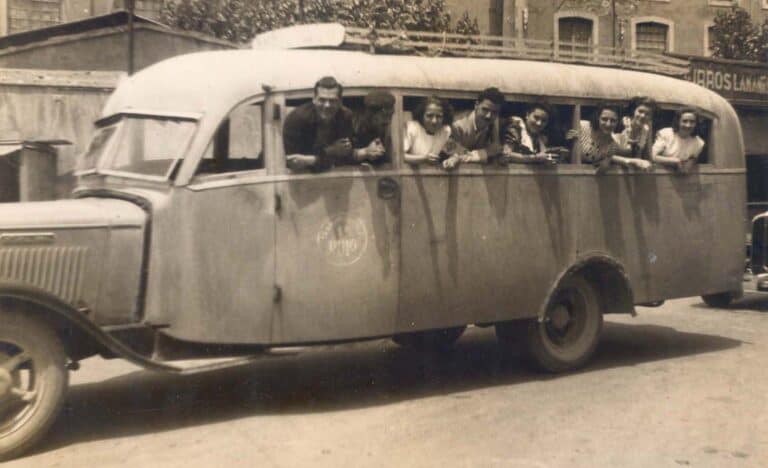 cotxe del Pau Puig, amb el xofer Ton Gras i altres passatgers i passatgeres l’any 1948