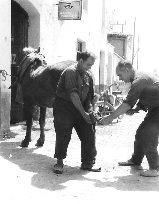 Vicenç Fabrega ferrant un animal, als anys 40 del segle XX després de tornar de l’exili a França