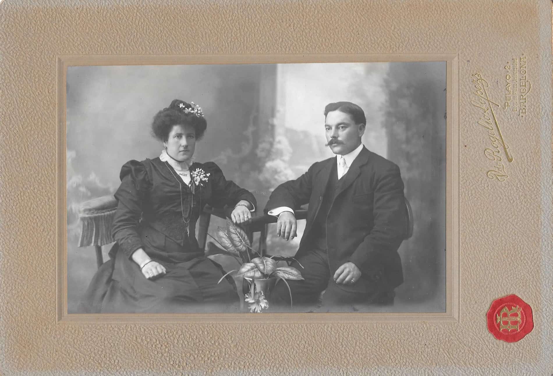 Retrat de la parella Eduard Puig i Elvira Miralles en el seu casament